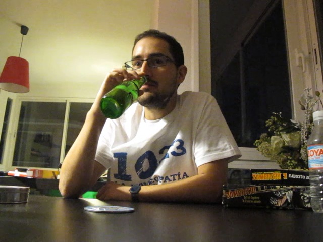 Suicida homeópata, dos horas después, tomándose una cerveza en lo que espera que le sobrevenga la muerte.